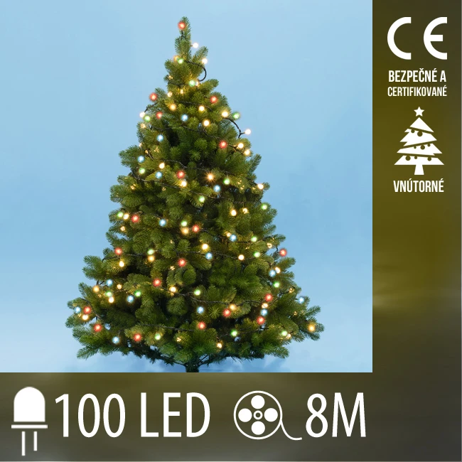 Vianočná LED svetelná reťaz vnútorná - guľky 1,5 cm - 100LED - 8M Multicolour