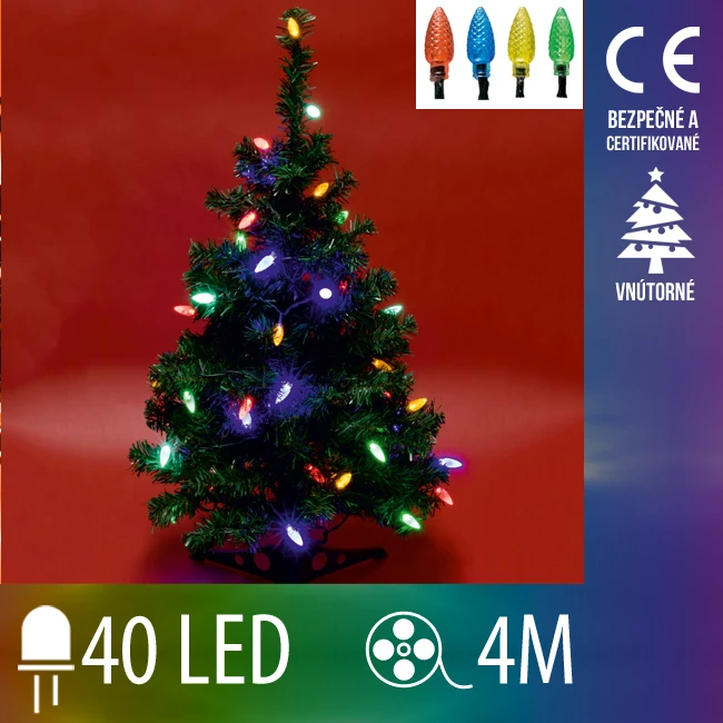 Vianočná led svetelná reťaz vnútorná - šišky - 40led - 4m multicolour