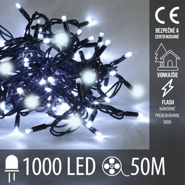 Vianočná led svetelná reťaz vonkajšia FLASH - 1000led - 50m - studená biela / studená biela