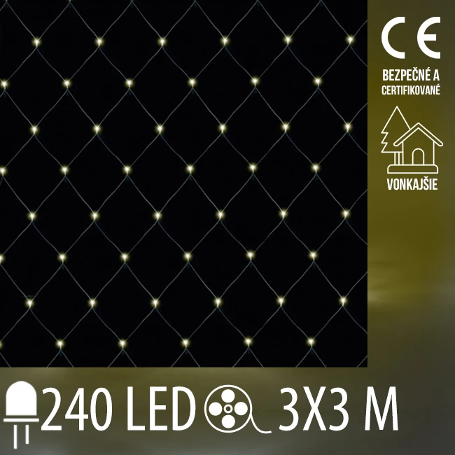Vianočná led svetelná sieť vonkajšia - 240led - 3x3 m - teplá biela