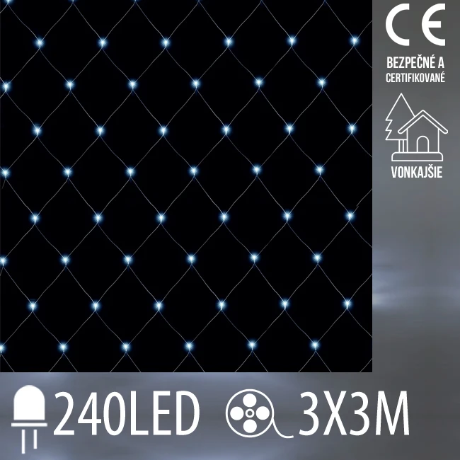 Vianočná LED svetelná sieť vonkajšia - 240LED - 3x3 m Studená biela