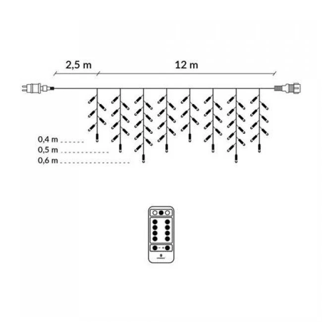 Súčasťou svetelnej reťaze je adaptér s 8 programami svietenia, s časovačom a s rádiovým diaľkovým ovládačom. Hlavnou výhodou rádiového diaľkového ovládača je, že ho môžete používať odkiaľkoľvek s dosahom 10m. Pomocou diaľkového ovládača môžete: