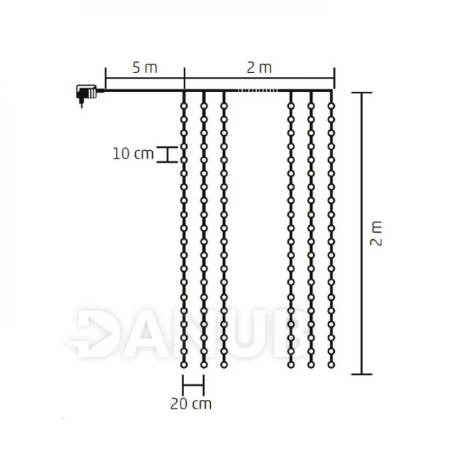 | rozmery | rozmery: 2 m x 2 m • 10 reťazcov, 20 cm medzi reťazcami • 10 cm medzi LED |