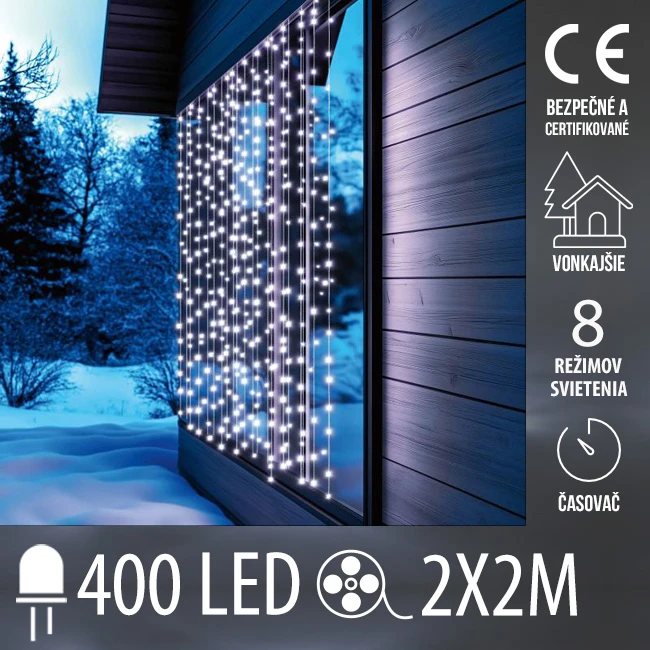 Vianočná led svetelná záclona vonkajšia - DOT LED - programy, časovač - 400led - 2x2m - studená biela