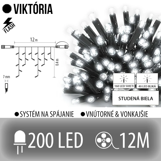 Viktória led svetelná záclona vonkajšia flash - 200led - 12m studená biela / flash prebliknutie studená biela