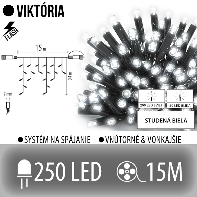 Viktória led svetelná záclona vonkajšia flash - 250led - 15m studená biela / flash prebliknutie studená biela