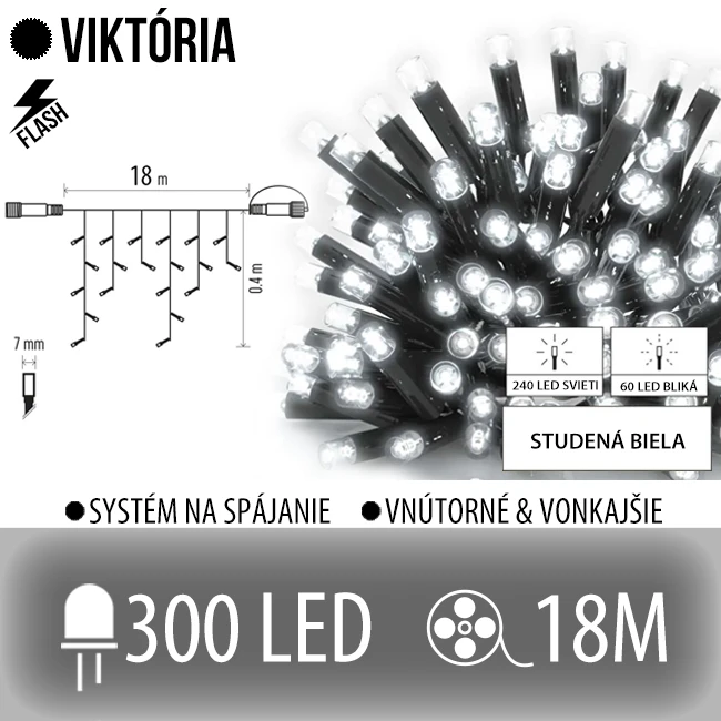 Viktória led svetelná záclona vonkajšia flash - 300led - 18m studená biela / flash prebliknutie studená biela