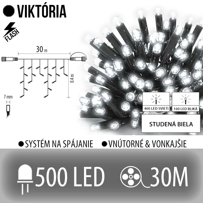 Viktória led svetelná záclona vonkajšia flash - 500led - 30m studená biela / flash prebliknutie studená biela