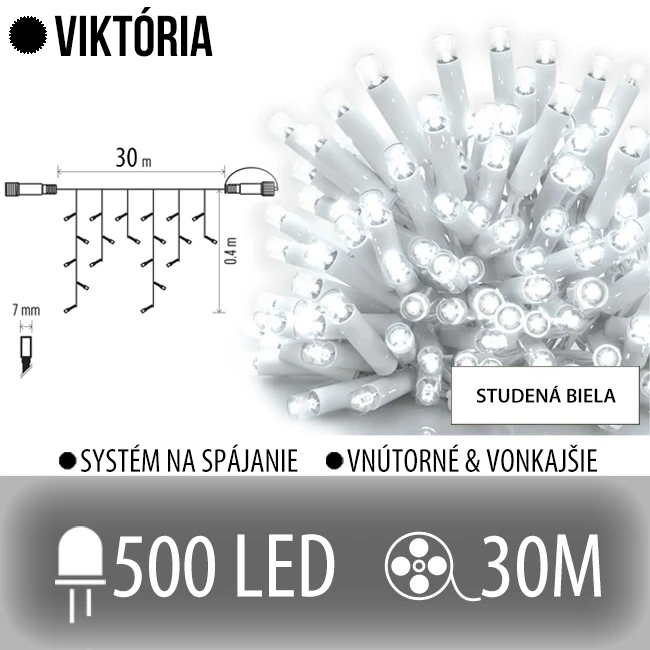 VIKTÓRIA LED svetelná záclona vonkajšia - 500LED - 30M Studená biela - biely kábel