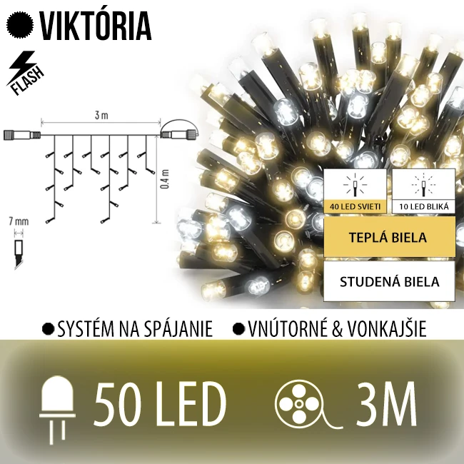 Viktória spojovateľná led svetelná záclona vonkajšia flash - 50led - 3m teplá biela / flash prebliknutie studená biela