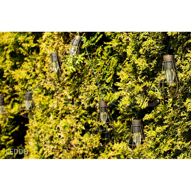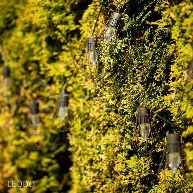 Solárna girlanda LOFCIK v patinovej farbe bude dekoratívnym a praktickým osvetlením vašej záhrady. Žiarovkový tvar solárnych držiakov dokonale zdôrazní spoločnosť väčších zelených rastlín. Svietidlá sú umiestnené na čiernom kábli s dĺžkou 3,8 metra.