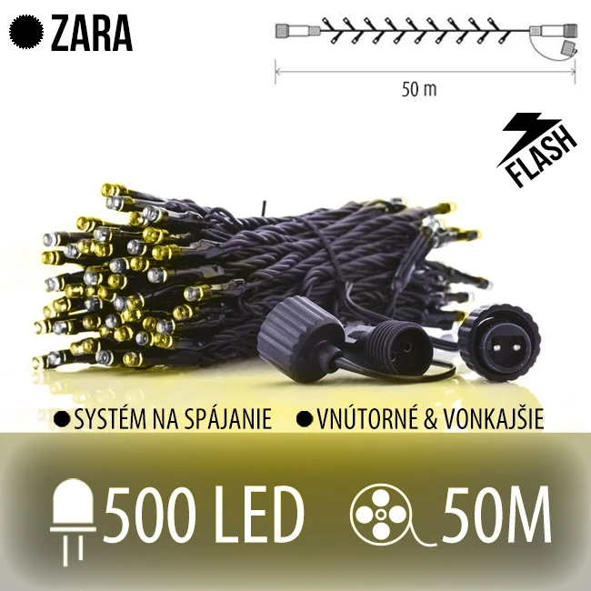 Zara led svetelná reťaz vonkajšia flash - 500led - 50m - teplá biela / flash prebliknutie studená biela