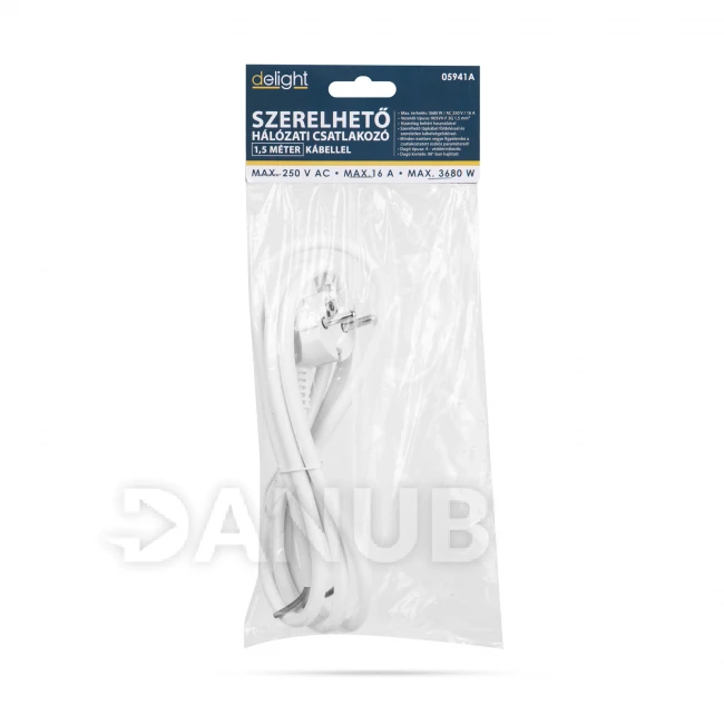 Montovateľná sieťová zásuvka - 1,5 metrov dlhý kábel - 3 x 1,5 mm² - biela