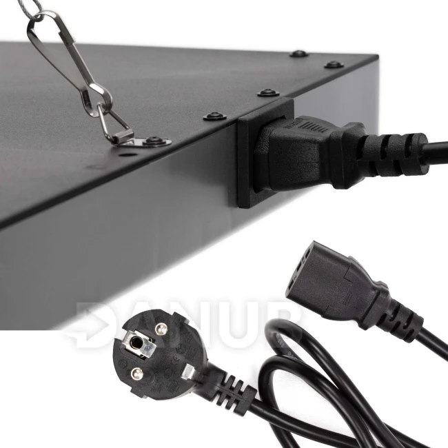 - Lampa má 4 montážne konzoly, ktoré umožňujú pripevniť laná s háčikmi a zavesiť lampu.